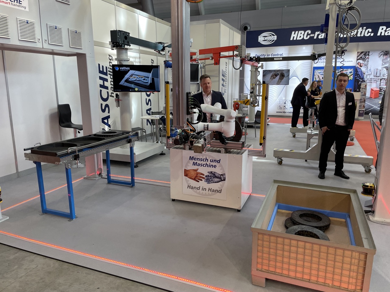 Auf der diesjährigen LogiMAT stellte unser Partner Zasche Handling GmbH ihre neue MRK-Portaleinheit vor, in der unsere Machine Vision API für die Erkennung und Entladung von LKW-Bremssscheiben integriert ist. Mit dem Vision-System von Vathos und einem 3D-Sensor von Mech-Mind können so schwere LKW Bremsscheiben aus einer Gitterbox entnommen und über das Portal einem Arbeitsplatz zugeführt werden. Für die Sicherheit des Mitarbeiters sorgt ein ausgeklügeltes Sicherheitssystem von Keyence. Die komplette MKR-Portaleinheit ist in mehreren Varianten jetzt bei Zasche Handling konfigurier- und bestellbar. Eine Besichtigung der Anlage im virtuellen Showroom vor Ort oder auf der kommenden Automatica in München ist ebenfalls möglich (https://www.zasche.de/).